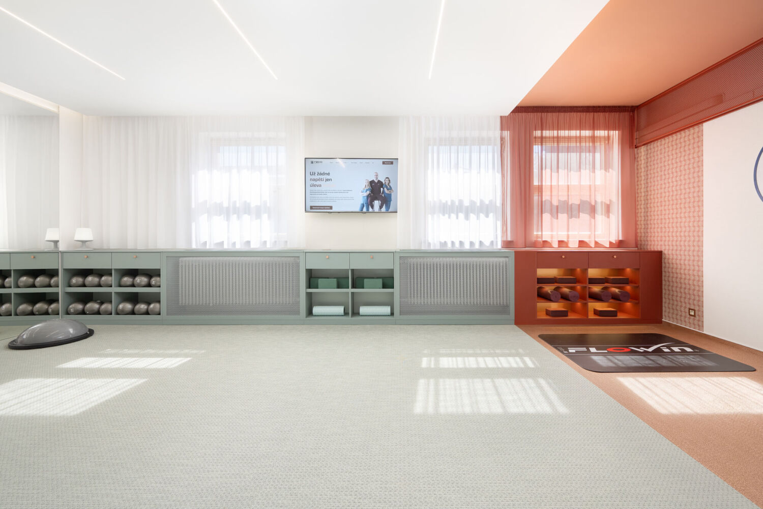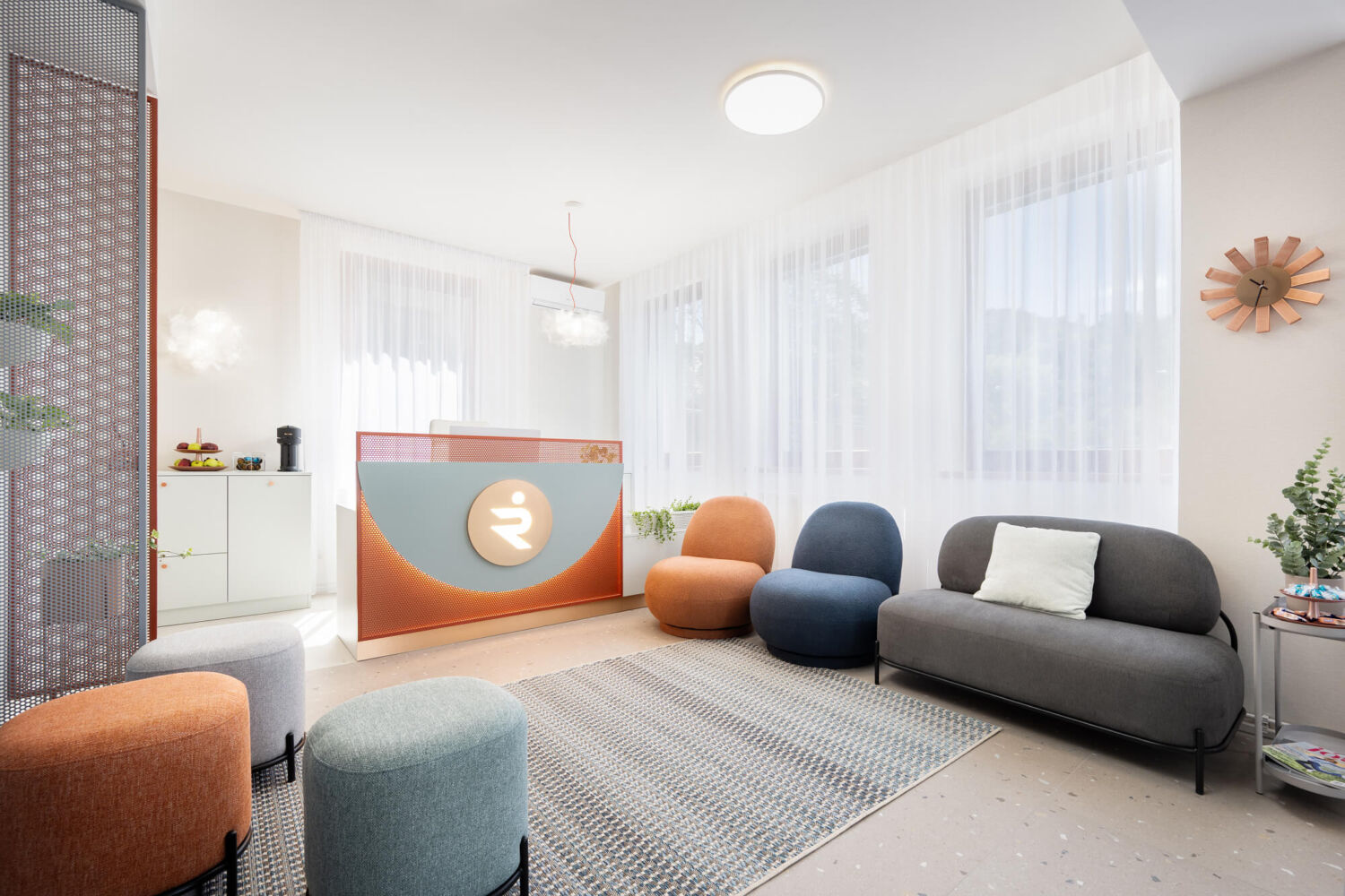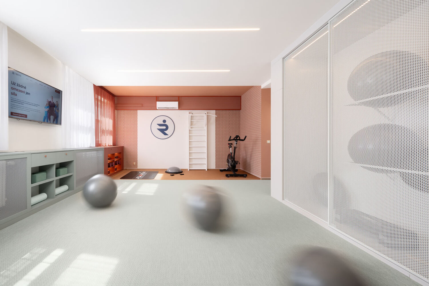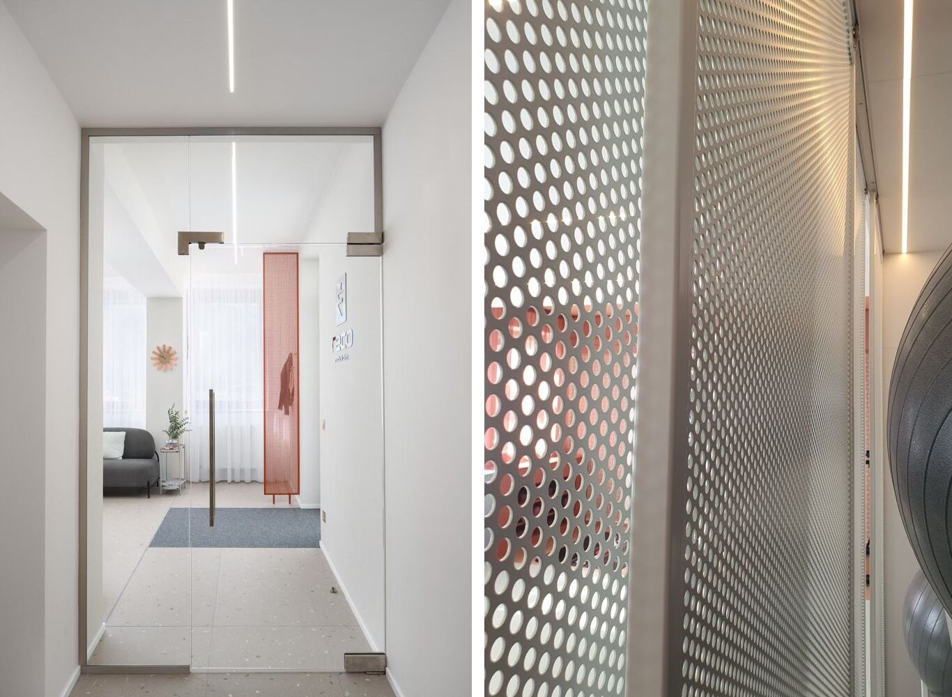 Reco Medical Clinic – to je nová fyzioterapeutická klinika v Brně. Mým přáním bylo vytvořit přátelský a vzdušný interiér, který podpoří proces uzdravování a kde se budou pacienti cítit příjemně. Interiér charakterizuje barevnost, dírkované detaily a měkkost textilu.